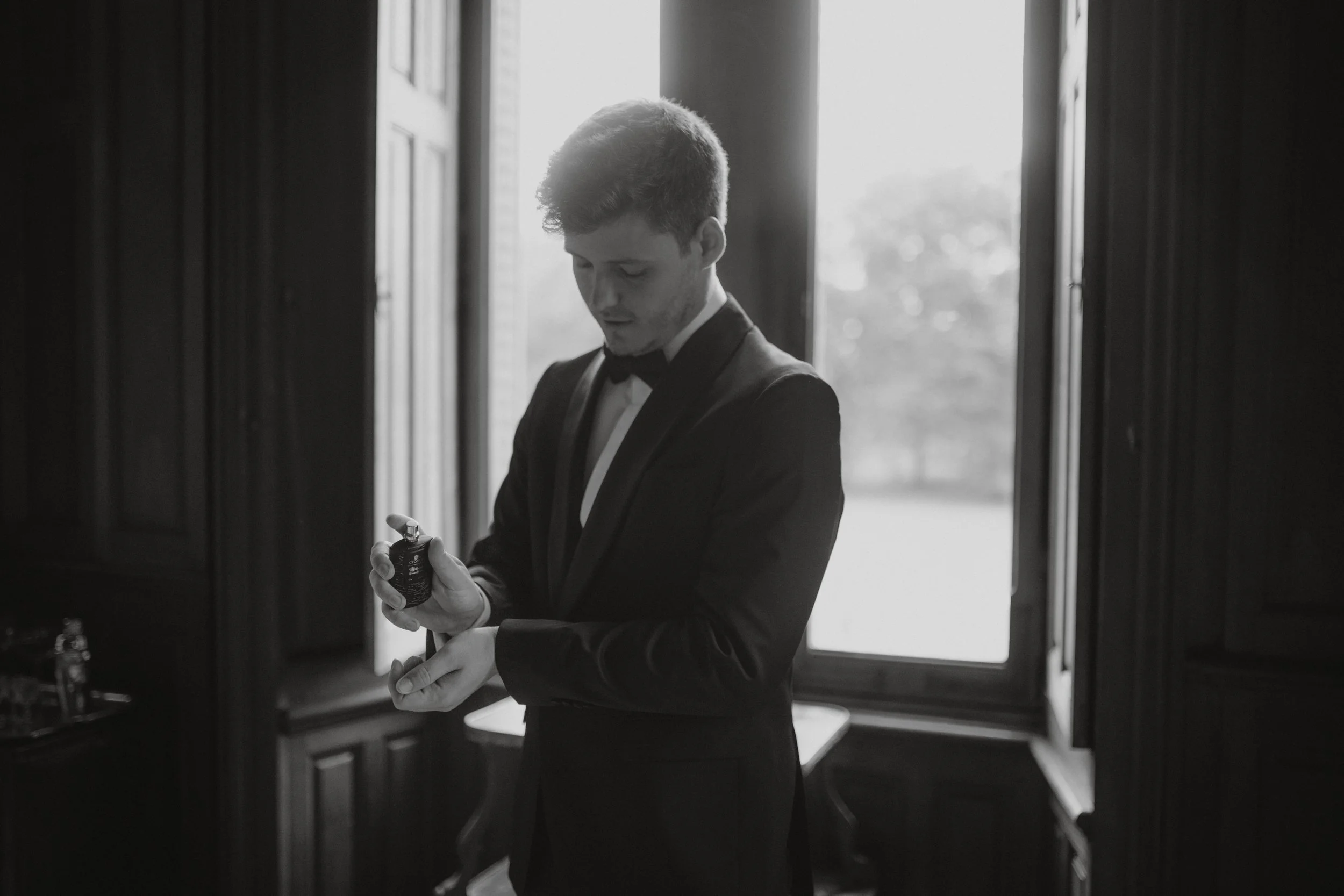 Schon am Freitag kamen die ersten Gäste an und konnten die besondere Atmosphäre des Château de Brossay spüren. Für uns begann der Samstag mit dem Getting Ready von Edda & Darwin: Bei Darwin war die Stimmung locker und entspannt, während bei Edda im royalen Zimmer ein liebevolles, aufgeregtes Durcheinander herrschte. Zu sehen, wie alle mithalfen und wie Edda schließlich in ihrem Kleid vor dem großen Fenster stand, war einer dieser Gänsehaut-Momente.